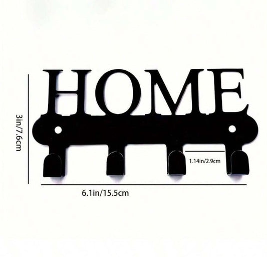 "HOME" Text Design Metal Wall Key Rack with 4 Hooks – Minimalist Entryway Organizer for Keys & Coats